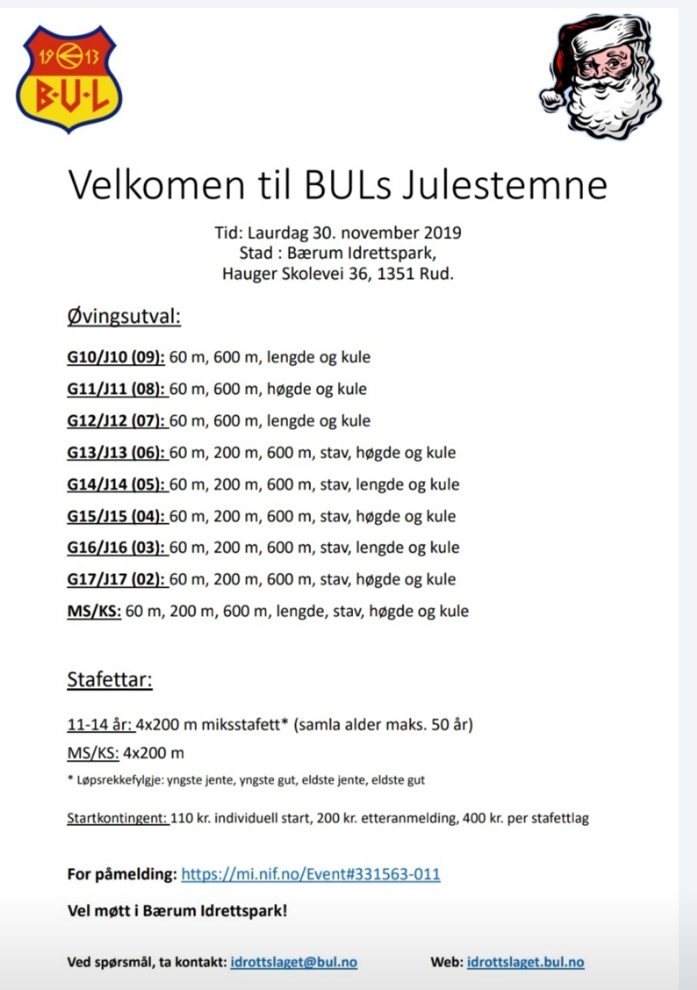 *Førstkommende lørdag, 30.november er det julestevne i Bærum Idrettspark.
